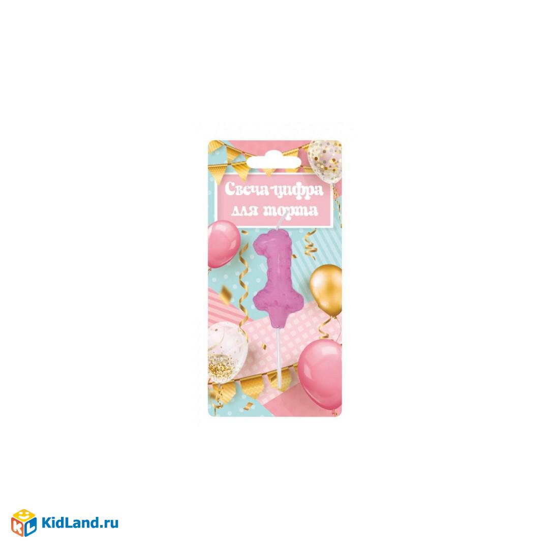 Свечи для торта цифра 1 розовая, блистер, с днем рождения ЧУДО ПРАЗДНИК