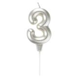 Свечи для торта цифра 3 серебряная, блистер, с днем рождения ЧУДО ПРАЗДНИК