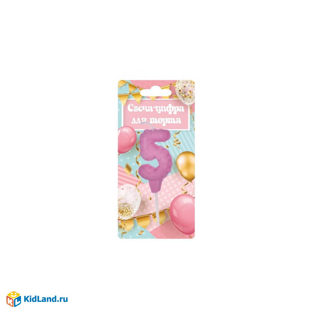 Свечи для торта цифра 5 розовая, блистер, с днем рождения ЧУДО ПРАЗДНИК