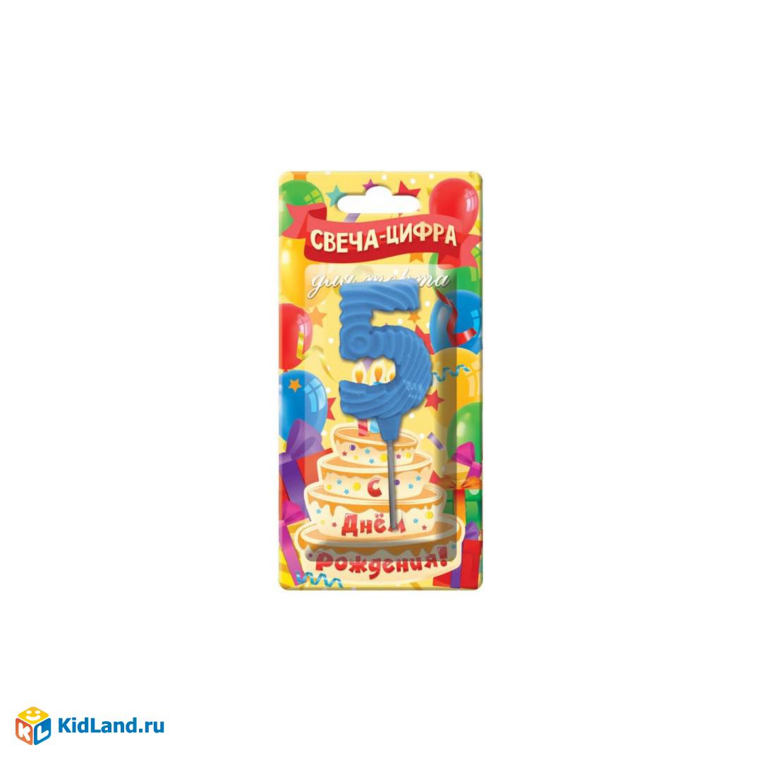 Свечи для торта цифра 5 синяя, блистер, с днем рождения ЧУДО ПРАЗДНИК