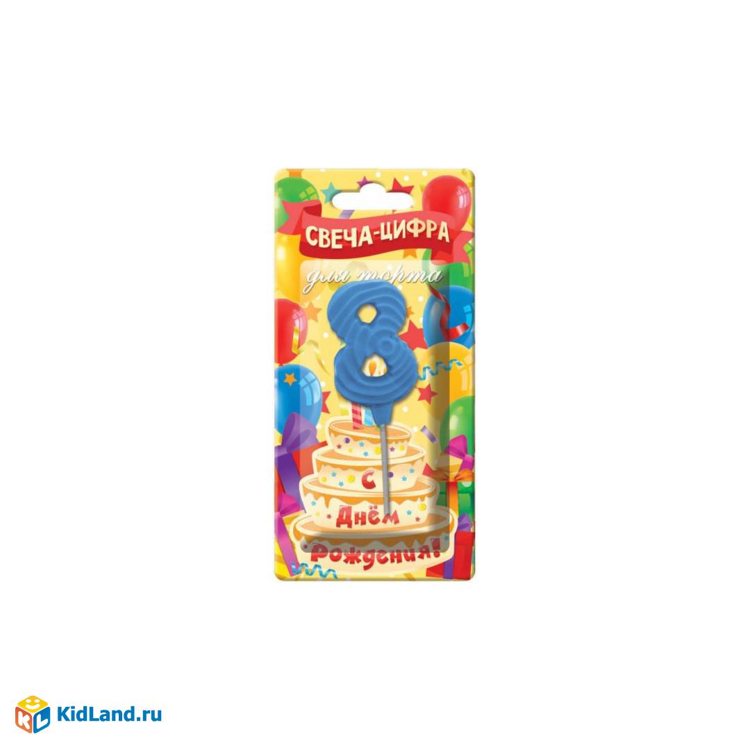 Свечи для торта цифра 8 синяя, блистер, с днем рождения ЧУДО ПРАЗДНИК