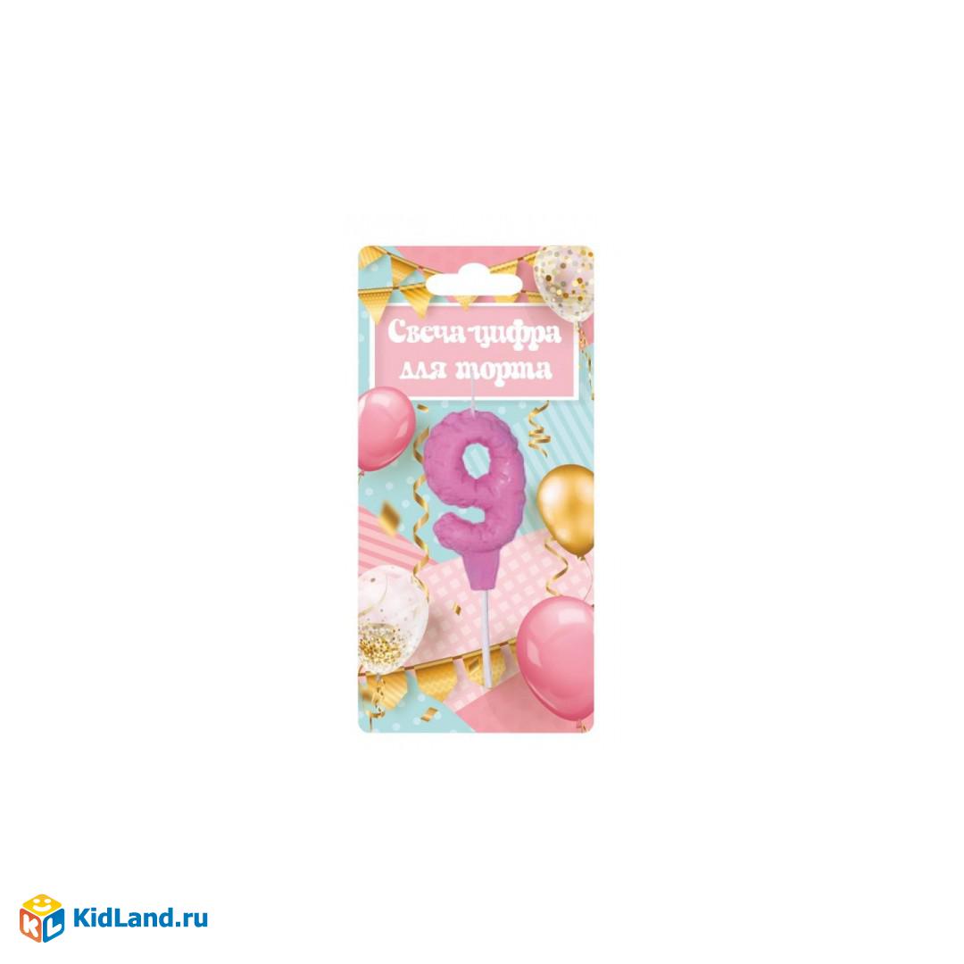 Свечи для торта цифра 9 розовая, блистер, с днем рождения ЧУДО ПРАЗДНИК