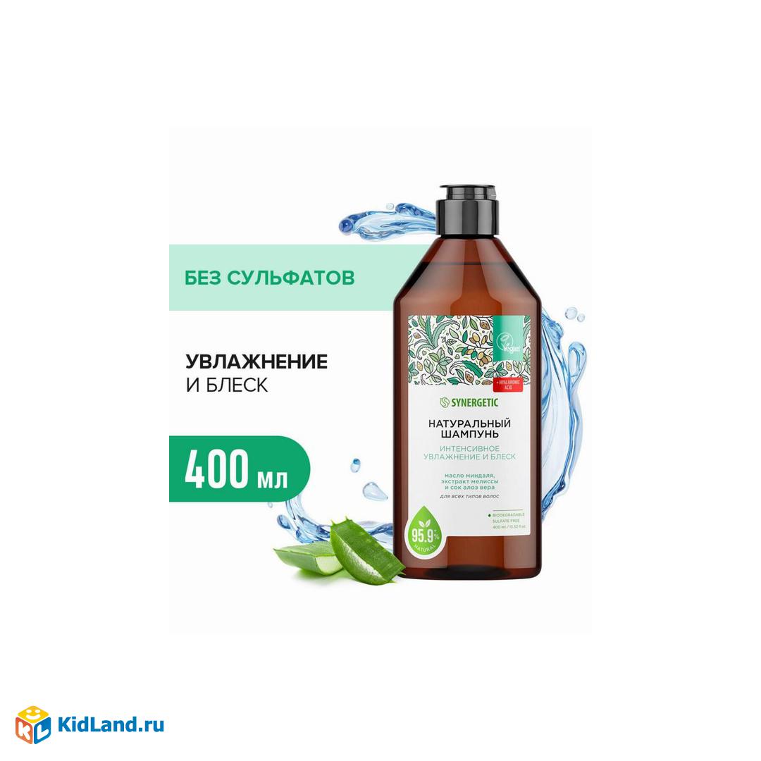SYNERGETIC Натуральный шампунь Интенсивное увлажнение и блеск бессульфатный 400 мл