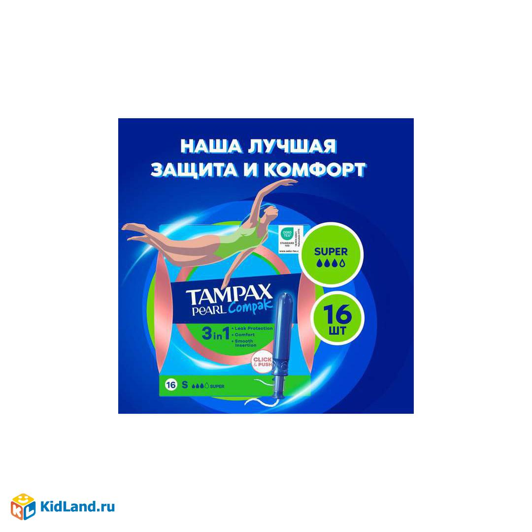 TAMPAX Compak Pearl Женские гигиенические тампоны с аппликатором Super Duo 16шт