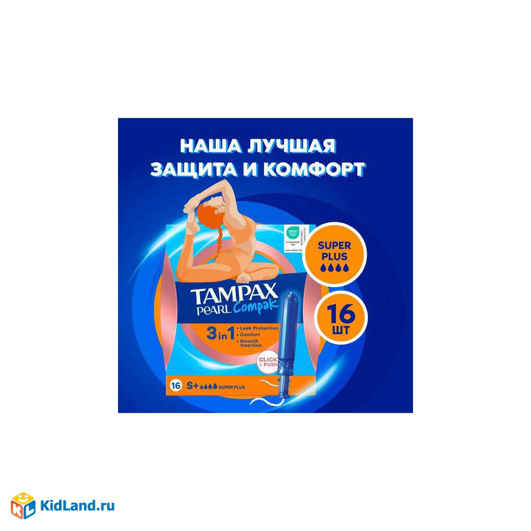 TAMPAX Compak Pearl Женские гигиенические тампоны с аппликатором Super Plus Duo 16шт