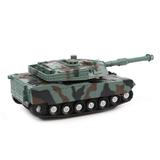 Тип инерционного механизма - фрикционный (т.е. танк можно разогнать сделав несколько поступательных движений, прижимая его к поверхности). Движение осуществляется с помощью 4-х колёс, соединённых друг с другом (работают совместно). Благодаря этой конструкции танк преодолевает подъём на наклонную поверхность, расположенную под углом в 45 градусов. Кроме того, развивается довольно большая скорость на горизонтальной поверхности. Ствол пушки поднимается и опускается (вручную). Башня вращается свободно, на любой угол поворота (вручную). Питание - 3*AG13 включены в комплект. Световые эффекты - мигание лампы на пушке танка. Звуковые эффекты - звук работающего двигателя и звук выстрелов.