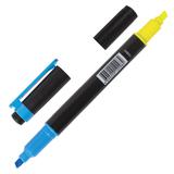 Текстовыделитель двусторонний BRAUBERG, ЖЕЛТЫЙГОЛУБОЙ, линия 1-4 мм, 150842