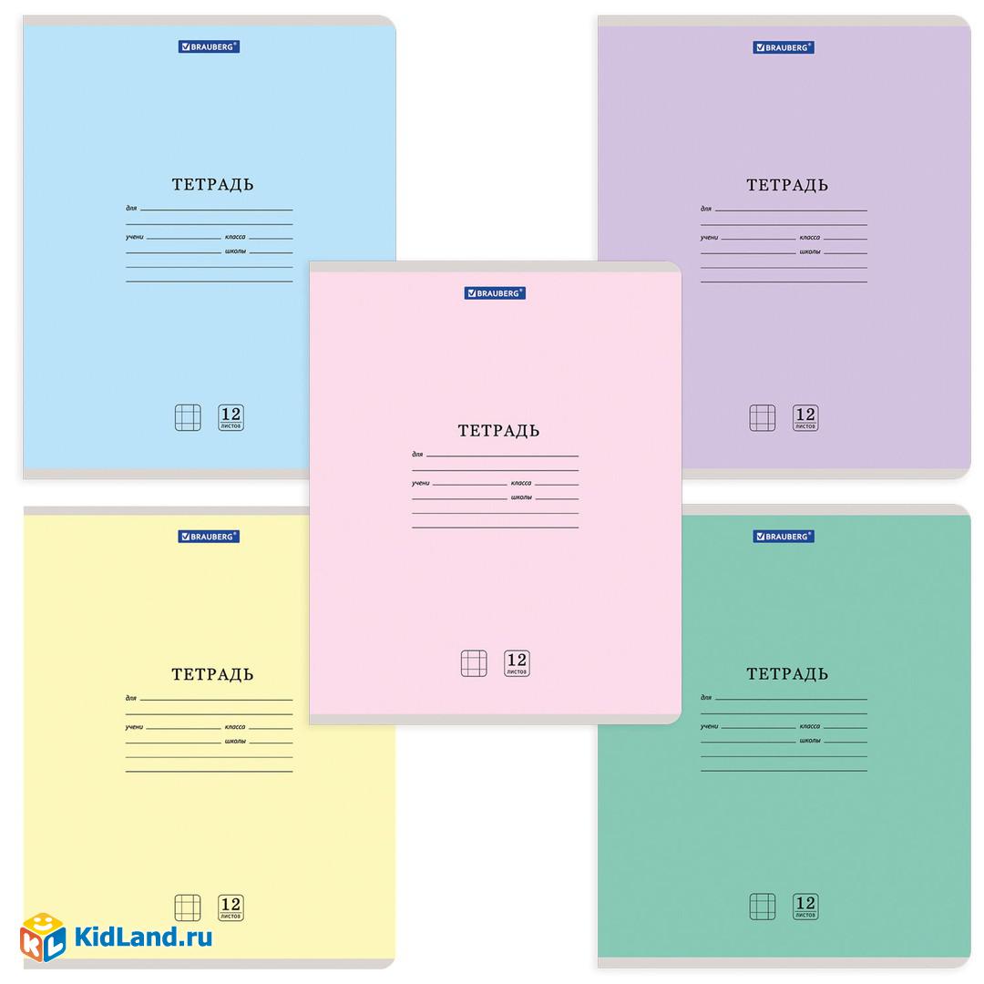 Тетрадь 12 л BRAUBERG "КЛАССИКА NEW", клетка, обложка картон, АССОРТИ (5 видов), 105682
