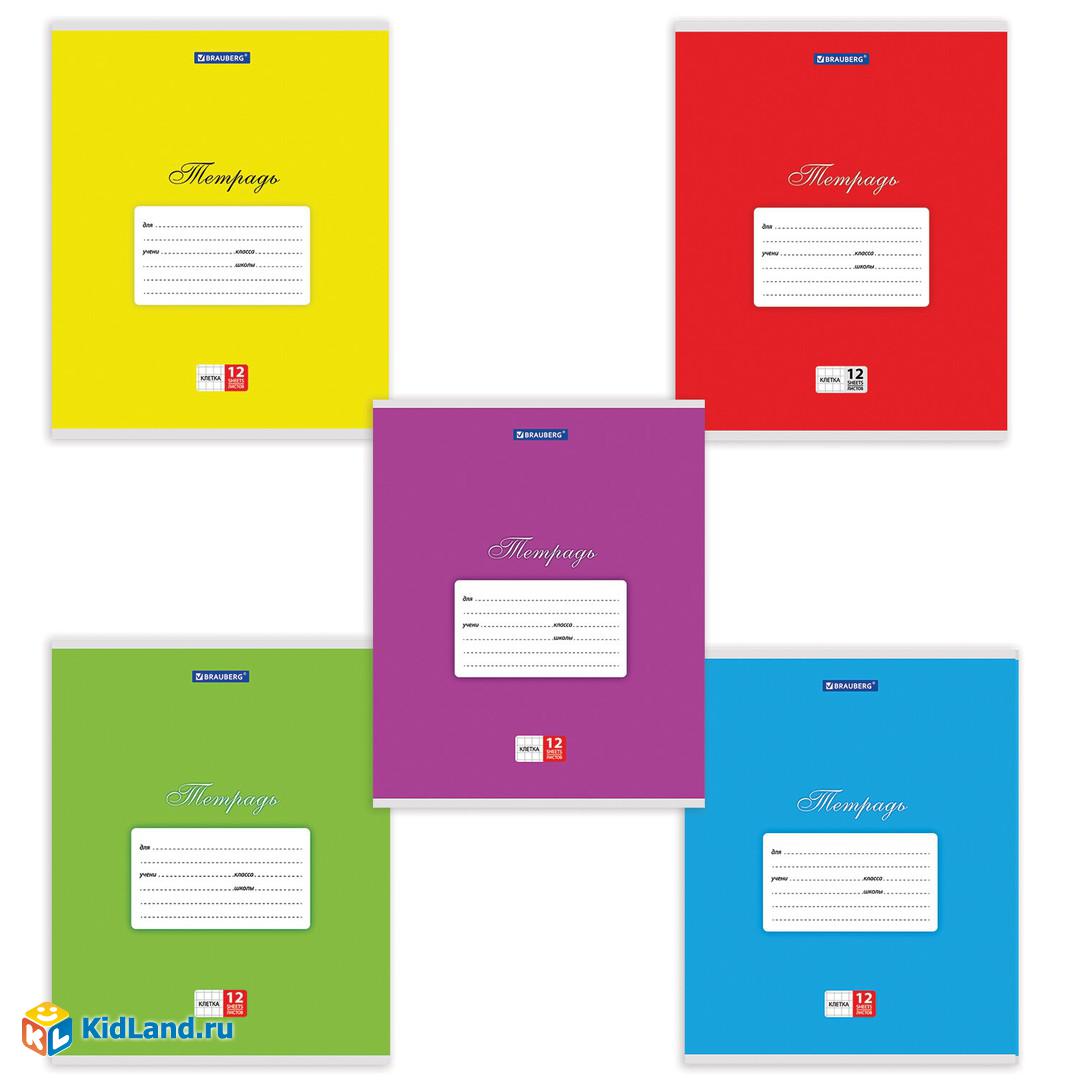 Тетрадь 12л BRAUBERG КЛАССИКА, клетка, обложка картон, АССОРТИ (5 видов), 103273