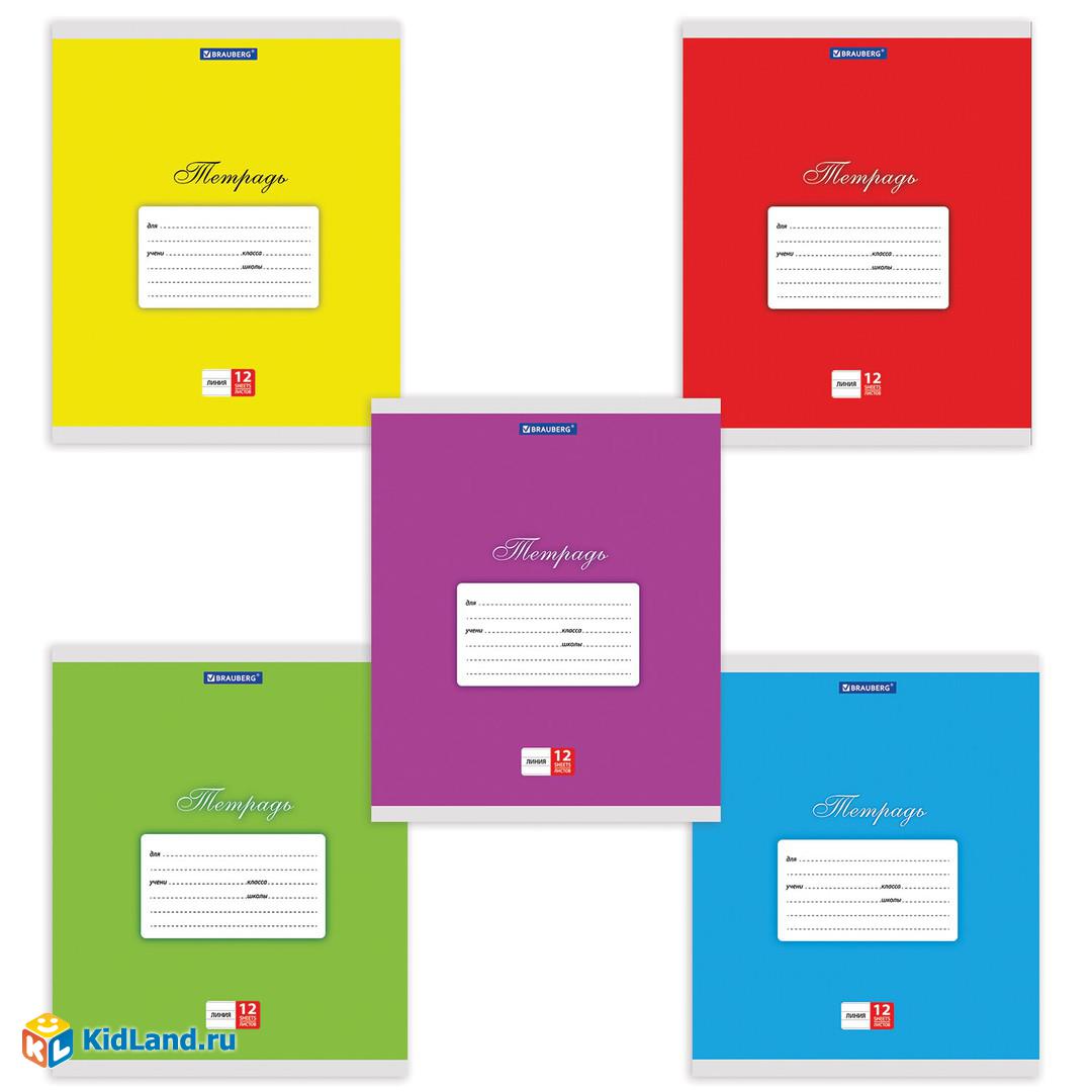 Тетрадь 12л BRAUBERG КЛАССИКА, линия, обложка картон, АССОРТИ (5 видов), 103274