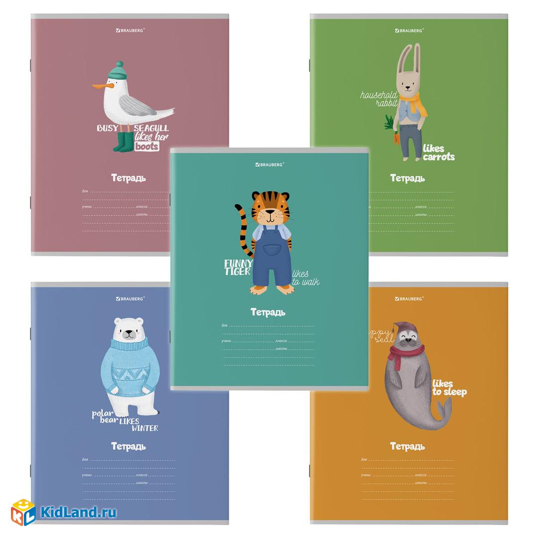 Тетрадь 18 л BRAUBERG клетка, обложка картон, "МОДНЫЕ ЖИВОТНЫЕ", 106480