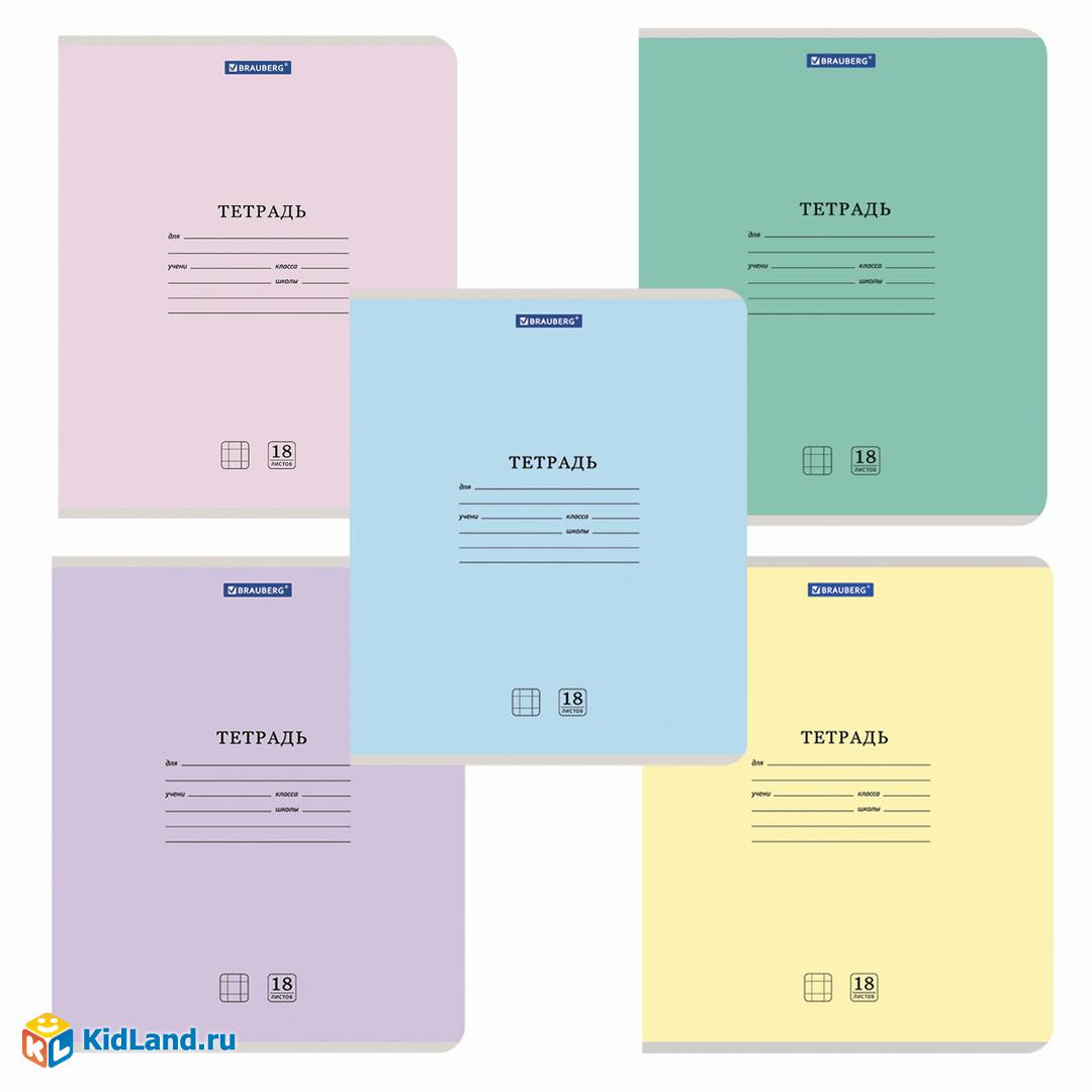 Тетрадь 18л BRAUBERG КЛАССИКА NEW клетка, обложка картон, АССОРТИ (5 видов), 105695