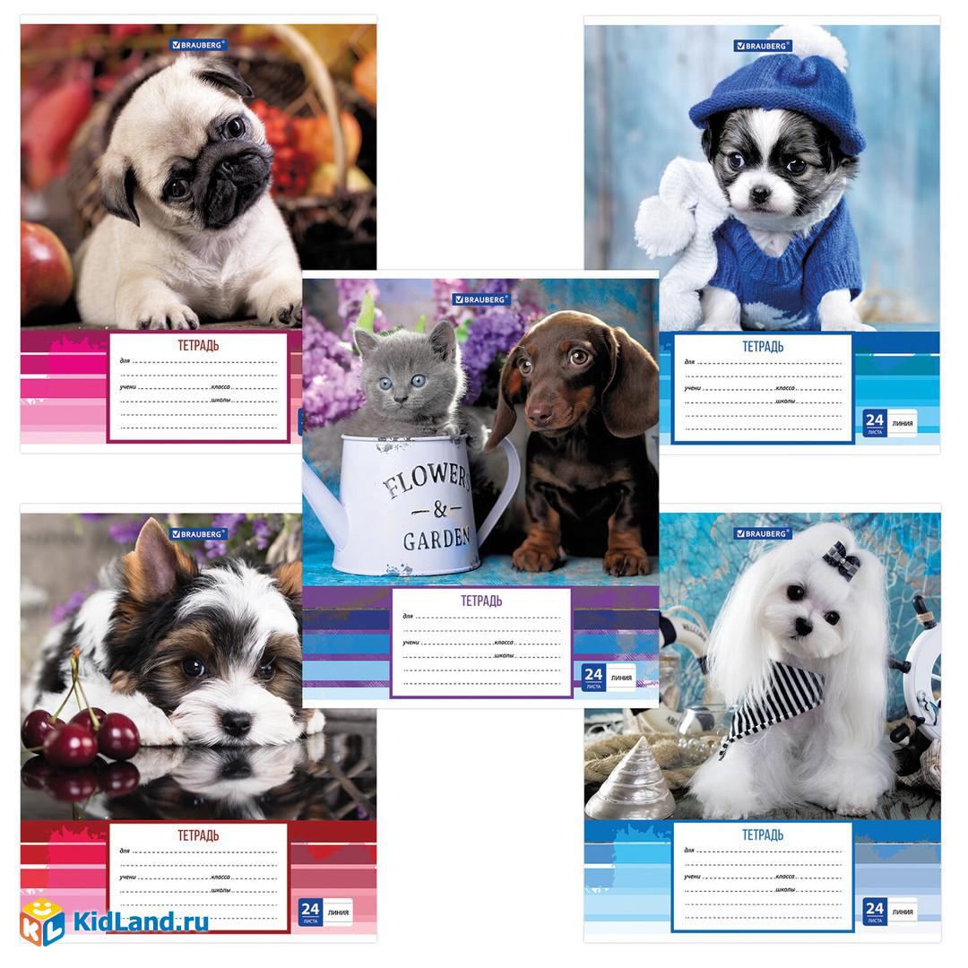 Тетрадь 24л BRAUBERG линия, обложка картон, ЗАБАВНЫЕ ЩЕНКИ, 403585