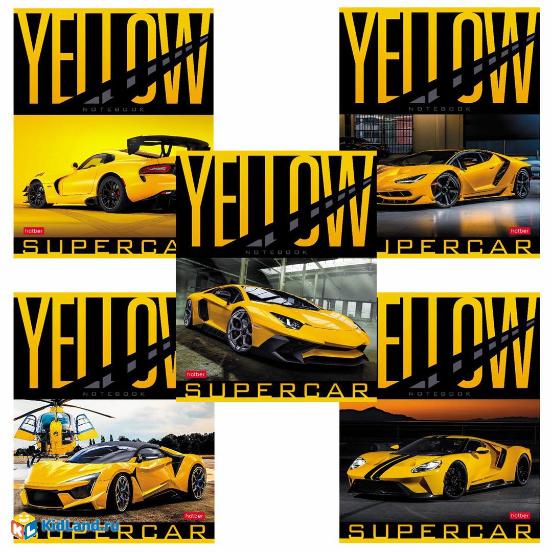 Тетрадь А5 48 л HATBER скоба, клетка, обложка картон, "YELLOWsupercar" (5 видов в спайке), 48Т5В1