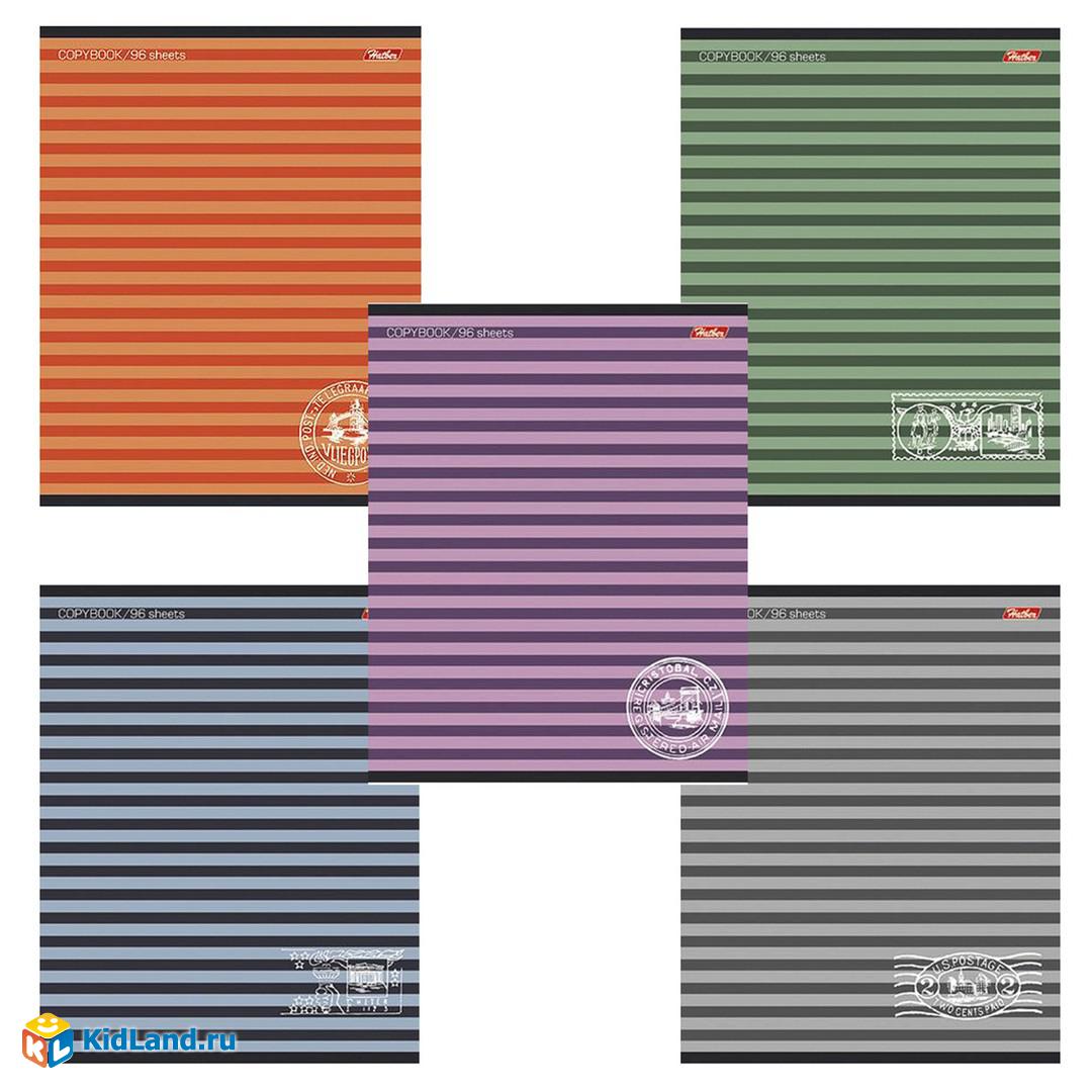 Тетрадь А5, 96 л, HATBER, скоба, линия, обложка картон, "ПОЛОСОЧКИ" (5 видов), 96Т5B2, T150306