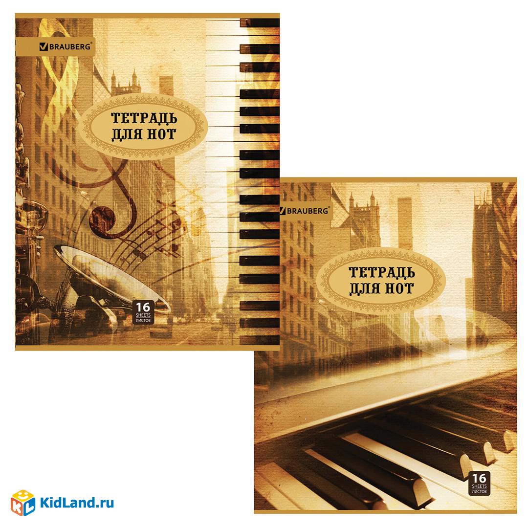 Тетрадь для нот А4, 16л, BRAUBERG облмелкарт, вертикальная, Город звуков (2 вида), 125415