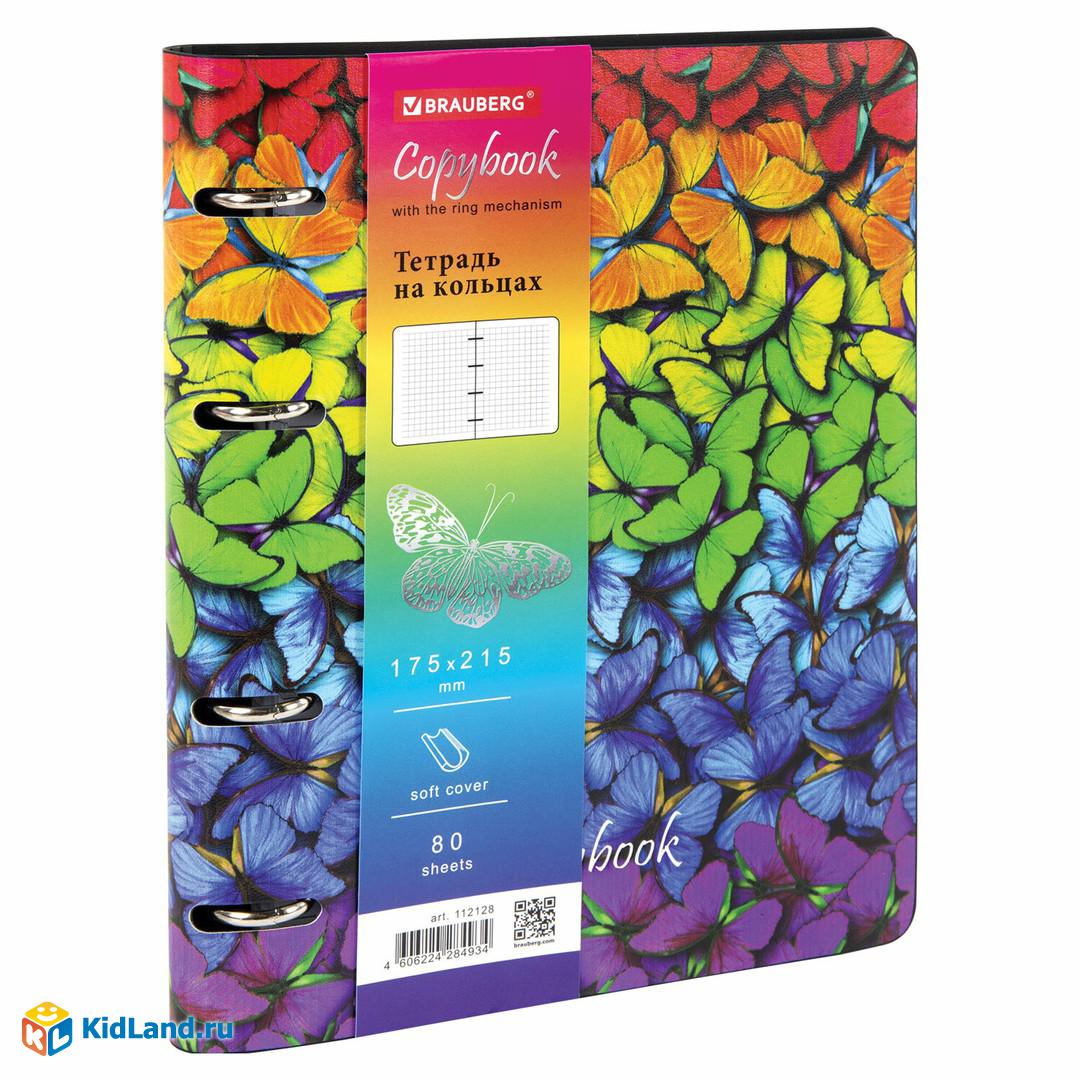 Тетрадь на кольцах А5 (180х220 мм), 80 л, под кожу, BRAUBERG VISTA, "Butterflies", 112128