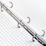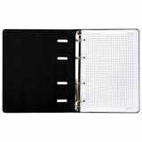 Блок состоит из 80 листов офсетной бумаги белого цвета плотностью 70 г/м2. Кольцевой механизм с 4-мя кольцами позволяет пользоваться сменным блоком в 120 листов. Линовка - клетка с полями. Мягкая интегральная обложка с тиснением фольгой и вырубкой под кольца выполнена из износоустойчивого материала с текстурой под гладкую кожу. Формат А5 удобно носить в рюкзаке/сумке, что позволит брать на учебу/работу всего одну тетрадь с возможностью добавлять и менять листы.