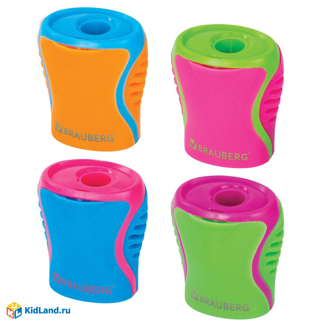 Точилка BRAUBERG "Mix", с контейнером, пластиковая, корпус ассорти, 228448