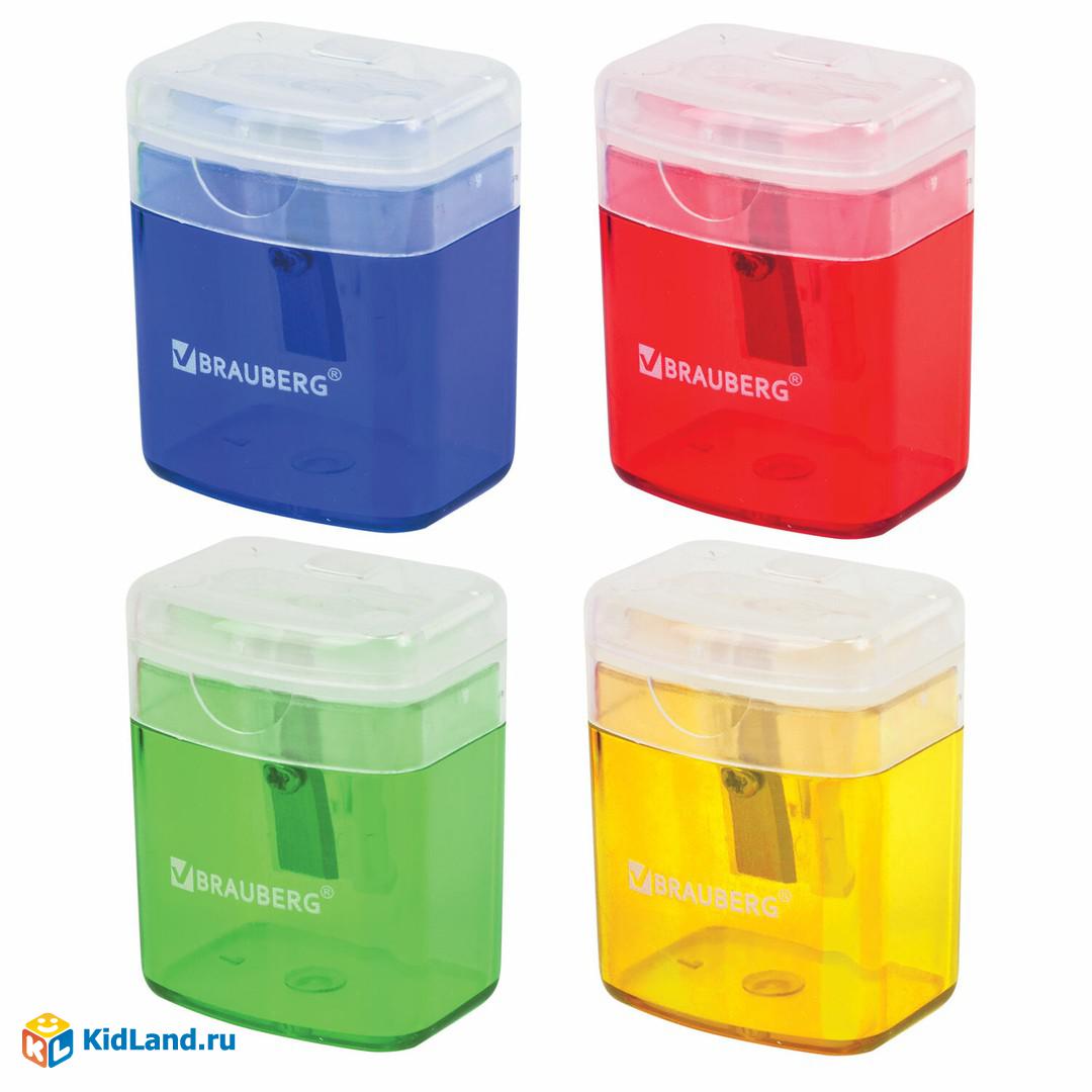 Точилка BRAUBERG "OfficeBox", с контейнером и крышкой, прямоуг, в упаковке с подв, ассорти, 222494