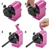 Корпус точилки выполнен из пластика розового цвета. Вращающийся роликовый нож из высококачественной стали обеспечивает быструю и острую заточку. Точилка имеет одно отверстие и вместительный контейнер для сбора стружки. Диаметр затачиваемого карандаша - 8 мм. Размер: 95х45х90 мм.