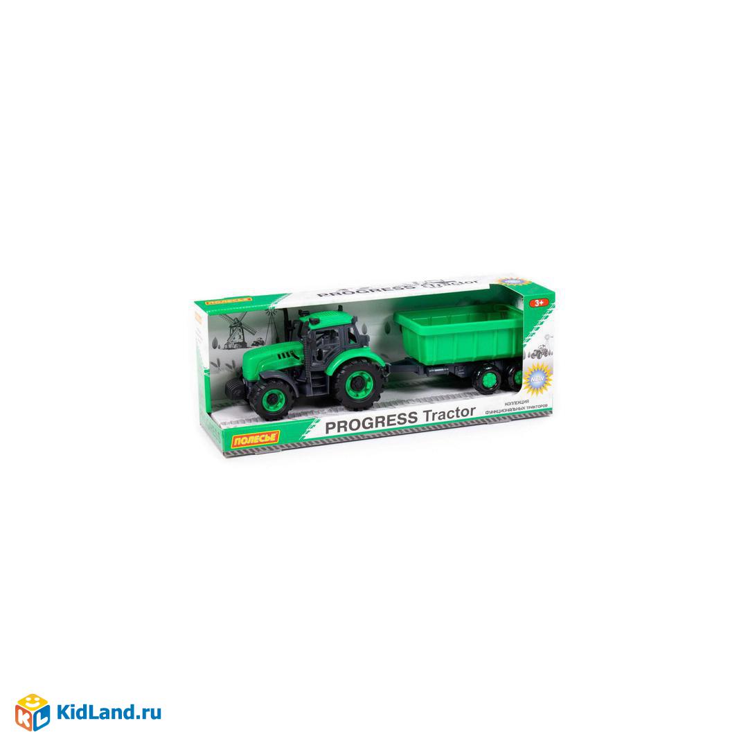 Трактор Полесье Прогресс с прицепом инерционный зелёный в коробке