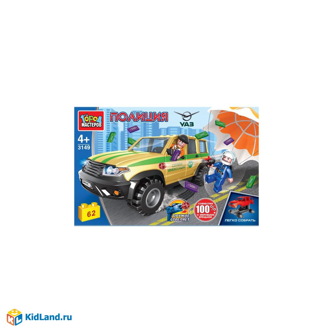 UAZ конструктор полицеская погоня на парашюте за грабителем, 62 дет. Город мастеров