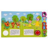 Ребёнок с удовольствием будет листать плотные страницы с закладками, рассматривать яркие картинки, читать вместе с родителями про приключения любимых персонажей, а также нажимать на кнопку и слушать весёлые песенки. Малыш легко освоит включение звука: по нажатию на кнопку включится первая песенка, при втором нажатии выключится, в 3-ий раз - заиграет следующая песенка и т.д. Благодаря компактному формату книгу удобно взять с собой в дорогу.