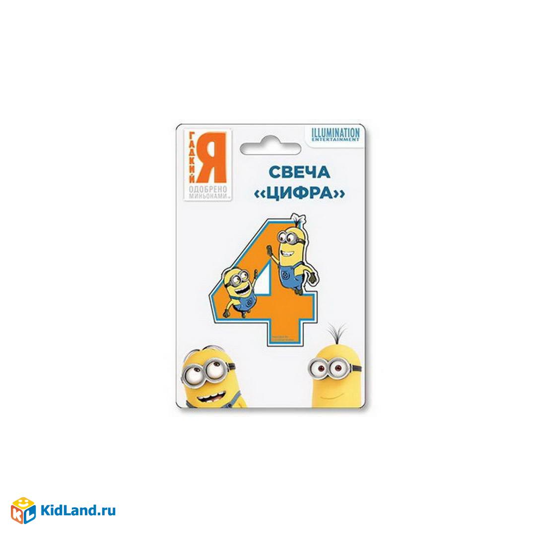 Вашему малышу исполнилось 4 года!? Тогда свеча-цифра в торт станет незаменимым его украшением. Свеча 4 Миньоны с нанесенным рисунком имеет высоту 8 см