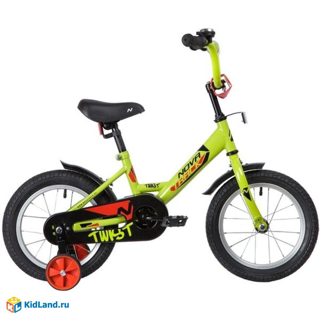 Велосипед NOVATRACK 14", TWIST, салатовый, тормоз ножной, короткие крылья, полная защита цепи