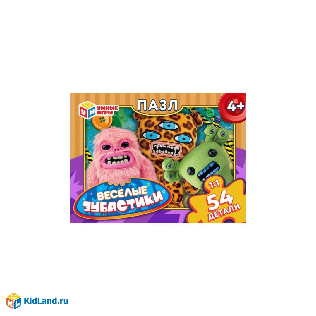 Весёлые зубастики. Пазлы в коробке 54 детали. 90х65х25 мм. Умные игры в уп.32шт