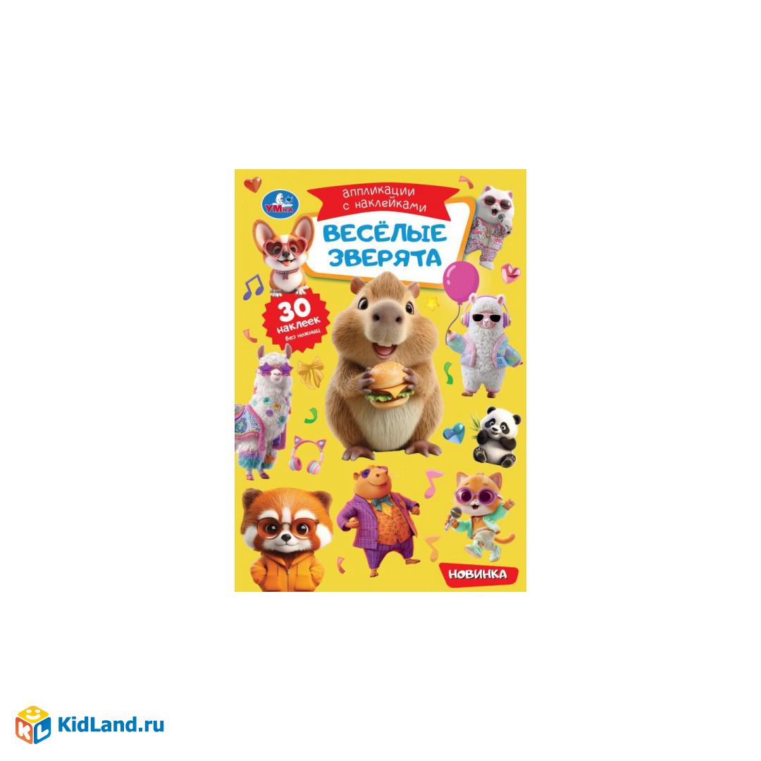 Весёлые зверята. Аппликации с наклейками. 145х210 мм. Скрепка. 8 стр. Умка