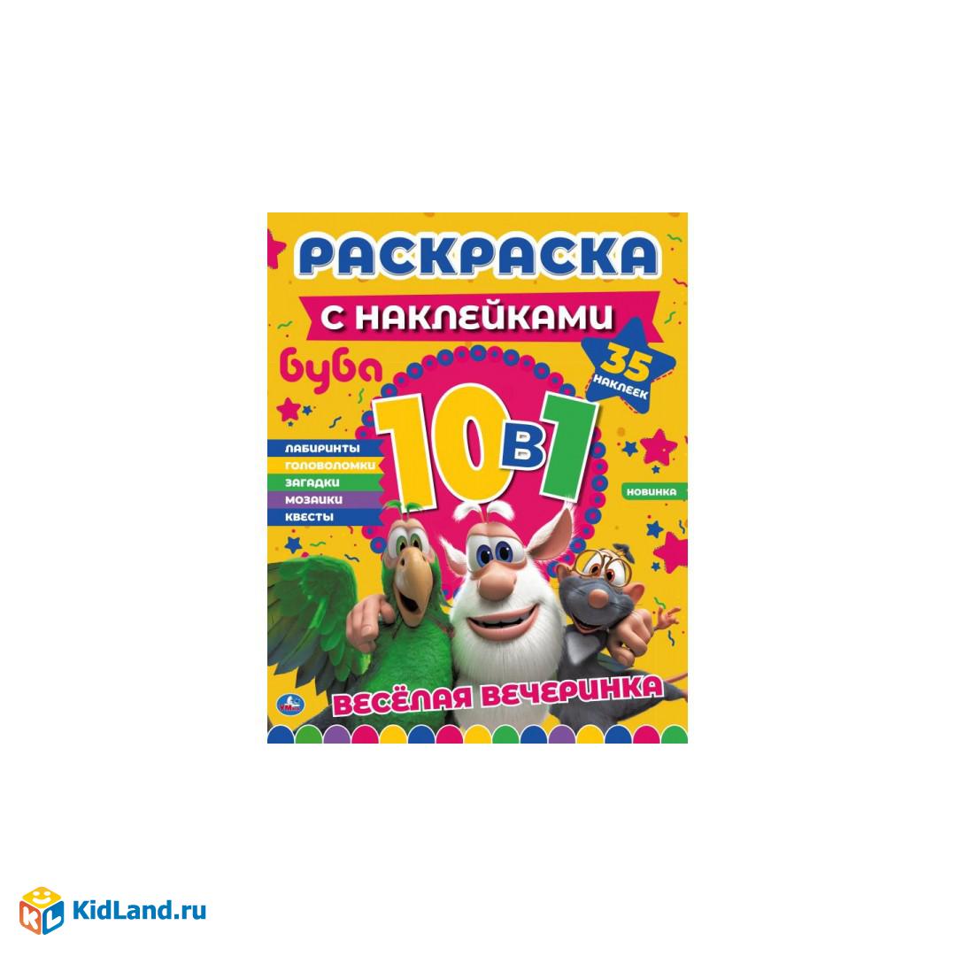 Весёлая вечеринка. Раскраска с наклейками 10 в 1. 35 наклеек. Буба. 215х285мм. 16стр. Умка в кор50шт