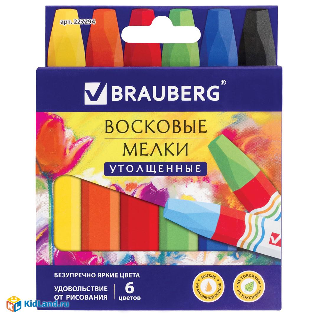 Восковые мелки утолщенные BRAUBERG "АКАДЕМИЯ", НАБОР 6 цветов, на масляной основе, яркие цвета, 2272