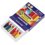 Палитра состоит из 6 ярких и насыщенных цветов. Полностью безопасны в использовании, не токсичны и не имеют резкого запаха. Благодаря своему составу карандаши пишут мягко, и ребенку не придется прикладывать усилия в процессе рисования. Утолщенная шестигранная форма корпуса и диаметр 11 мм делают их еще более удобными для тренировки руки к письму у дошкольников и детей младшего школьного возраста, формируют навык правильного захвата, снижают нагрузку на кисти рук, отлично развивают мелкую моторику. Каждый карандаш завернут в бумажную этикетку, что предохраняет от загрязнений, снижает скольжение, увеличивает прочность. Восковые карандаши упакованы в картонную коробку с европодвесом.