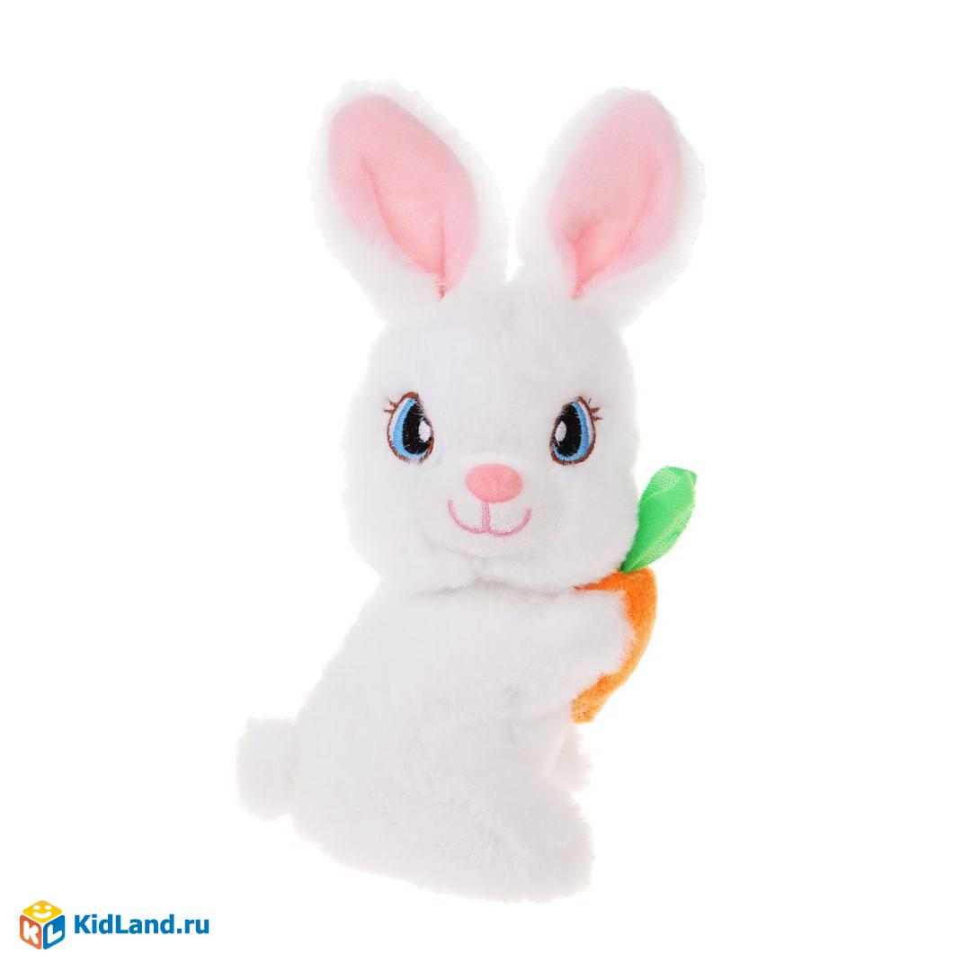 Высота мягконабивной игрушки «Зайка с морковкой» от ТМ Fluffy Family составляет 18 см.