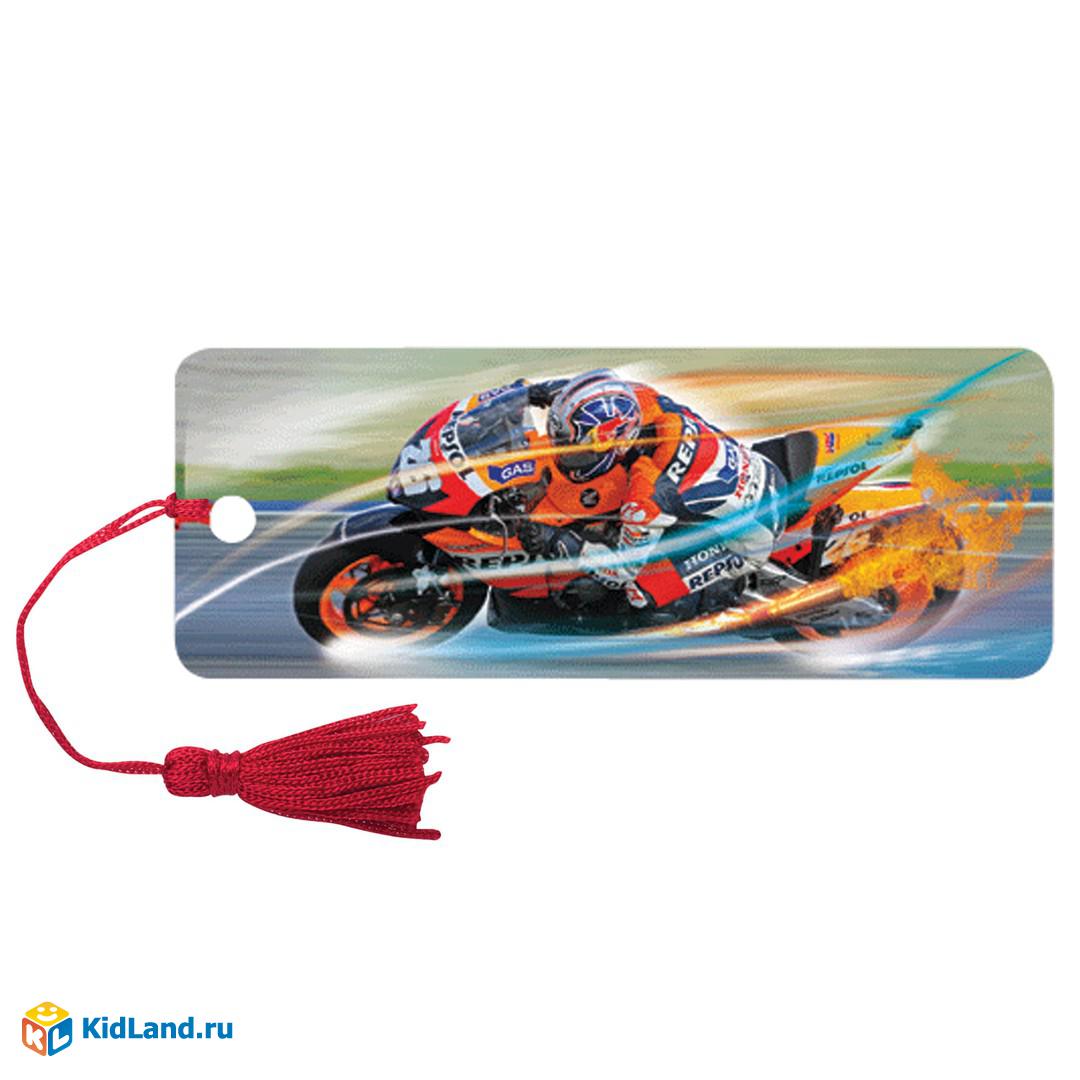 Закладка дкниг 3D BRAUBERG, объемная, "Мотогонки", с декоративным шнурком-завязкой, 125769
