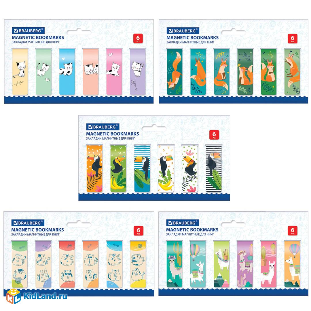 Закладки для книг МАГНИТНЫЕ, "ANIMALS", набор 30 шт, 60x20 мм, BRAUBERG, 113176