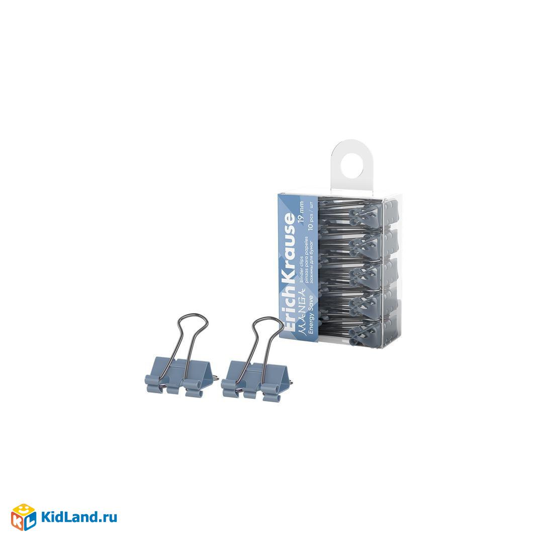 Зажимы для бумаг Energy Save ErichKrause Manga, 19 мм, Pale Blue (в пэт-боксе по 10 шт.)