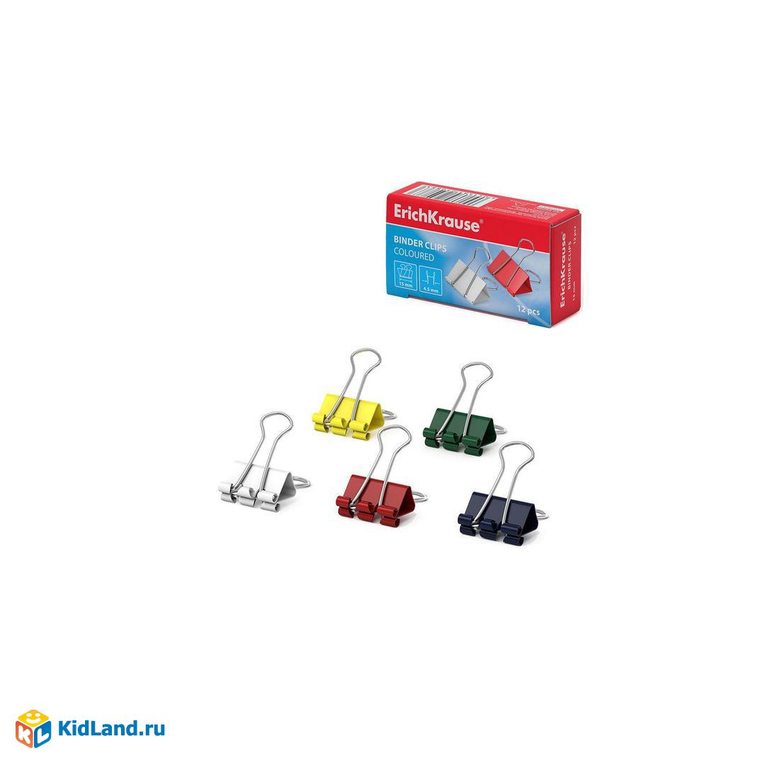 Зажимы для бумаг ErichKrause Classic, 15мм, ассорти (в коробке по 12 шт.)