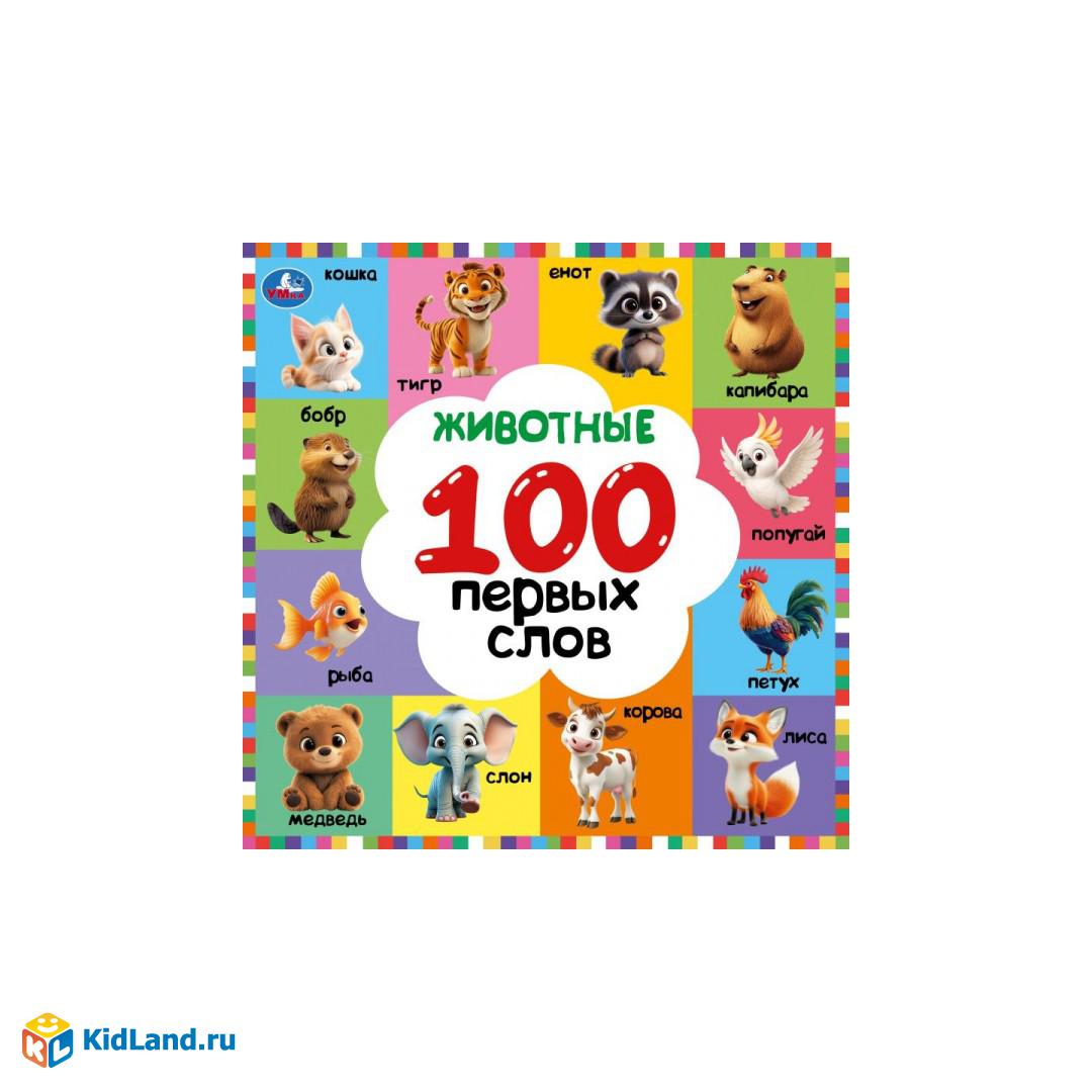 Животные. 100 первых слов. Картонная книга. 220х220 мм. 12 стр. Умка