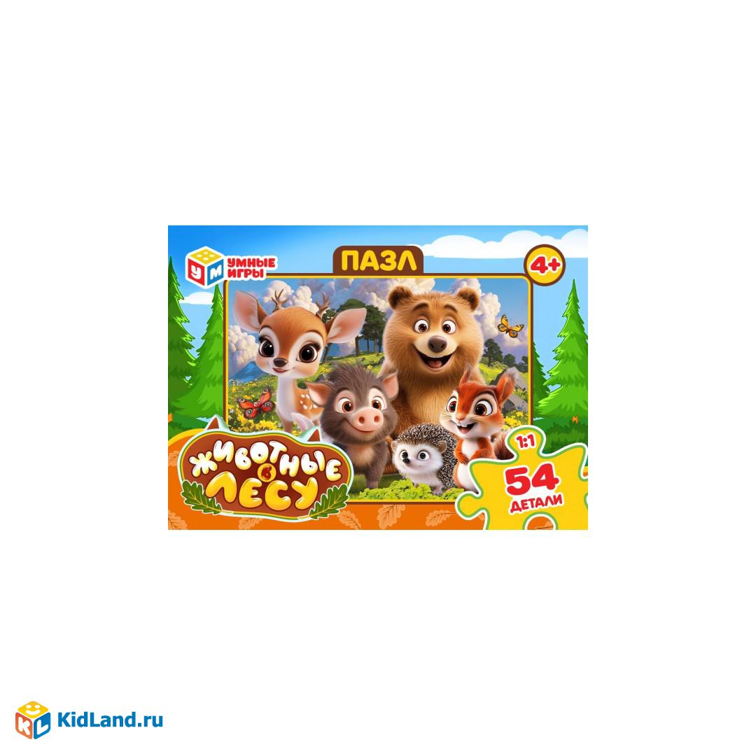 Животные в лесу. Пазлы в коробке 54 детали. 90х65х25 мм. Умные игры в уп.32шт