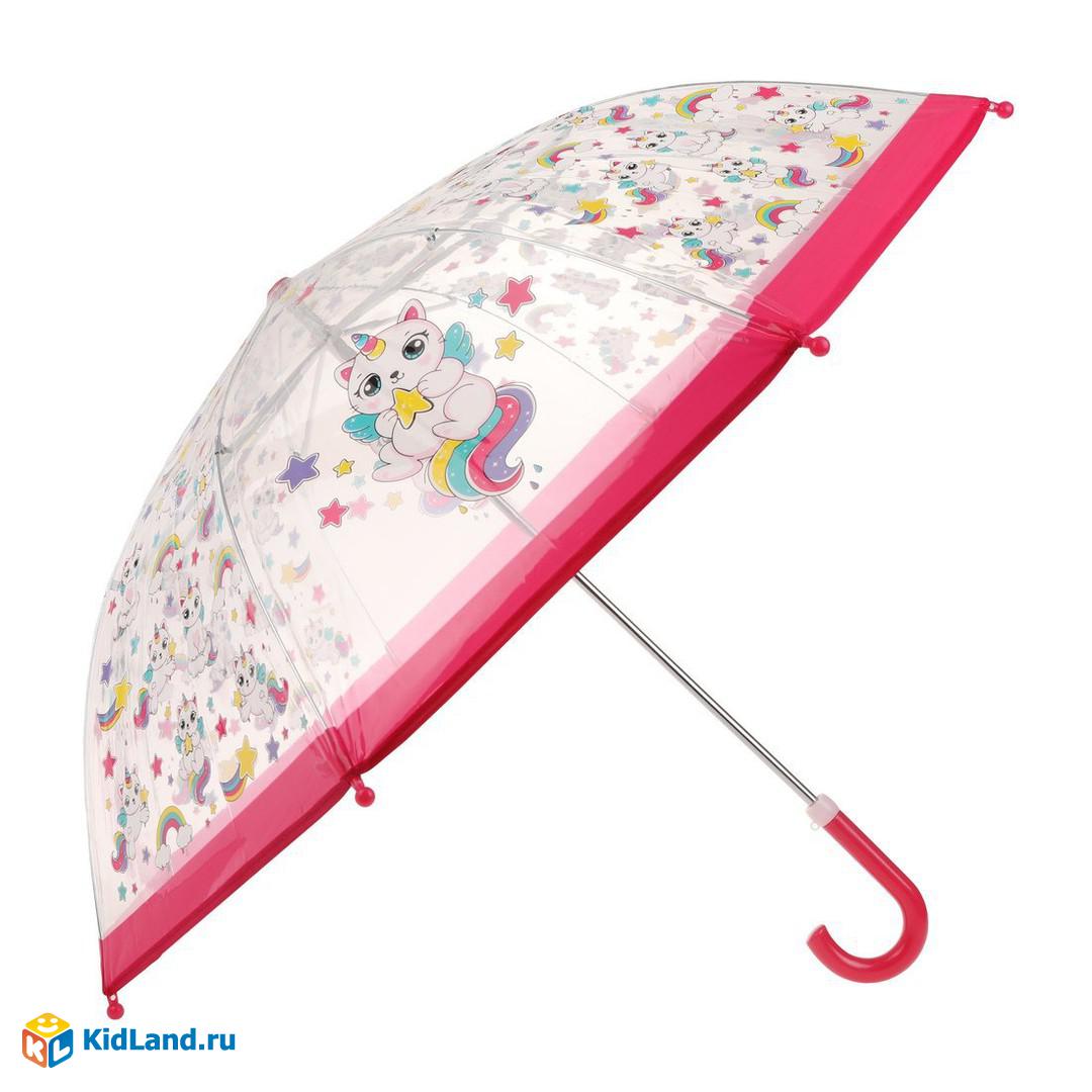 Прозрачный детский зонтик «Кэттикорн» от ТМ Mary Poppins защитит ребёнка от дождя и подарит ему отличное настроение даже в ненастную погоду! Благодаря прочному креплению купола к каркасу, зонту совсем не страшен ветер. Изогнутая ручка позволяет крепко держать зонтик в руках. Концы спиц закрыты пластиковыми шариками.