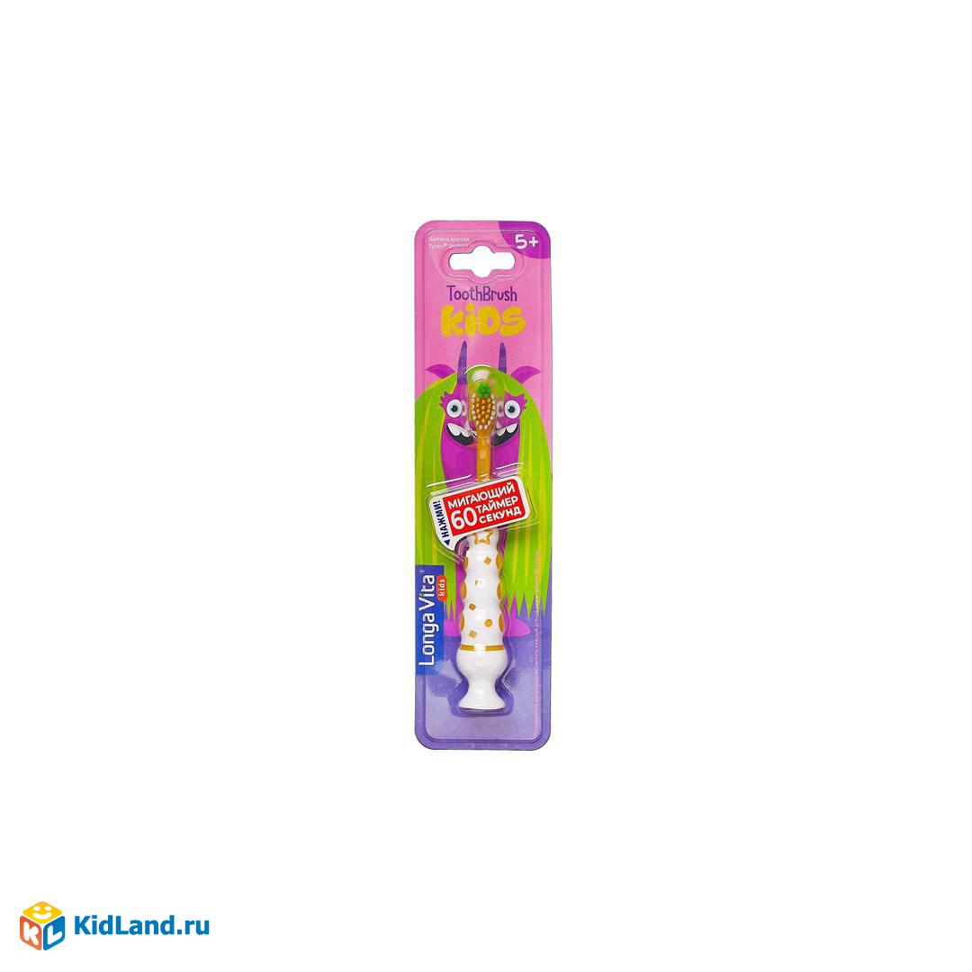 Зубная щетка Longa Vita детская , мигающая с присосоской 5-10 лет оранжевая