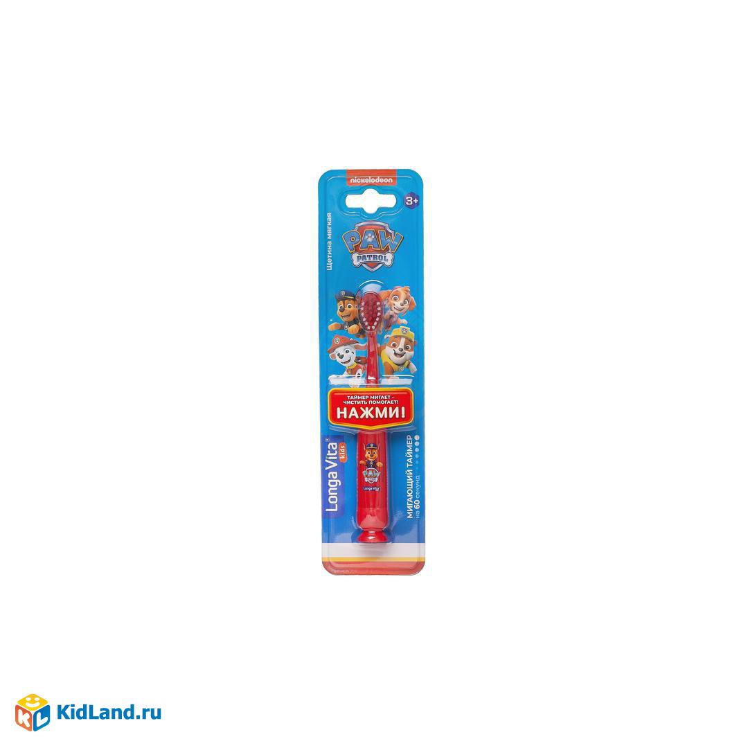 Зубная щетка Longa Vita Paw Patrol детская, мигающая с присоской от 3 лет красная