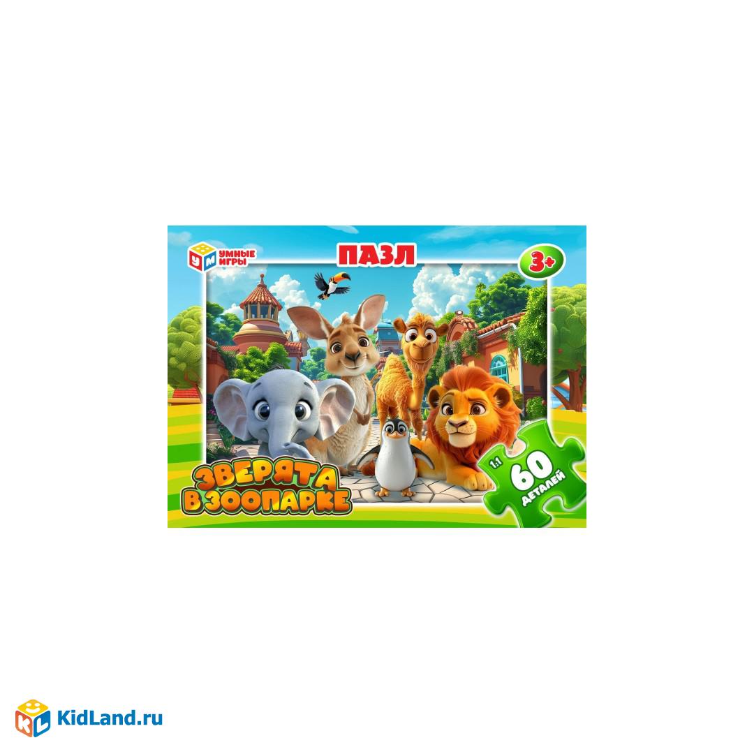 Зверята в зоопарке. Пазлы в коробке 60 деталей. 190х141х35 мм. Умные игры